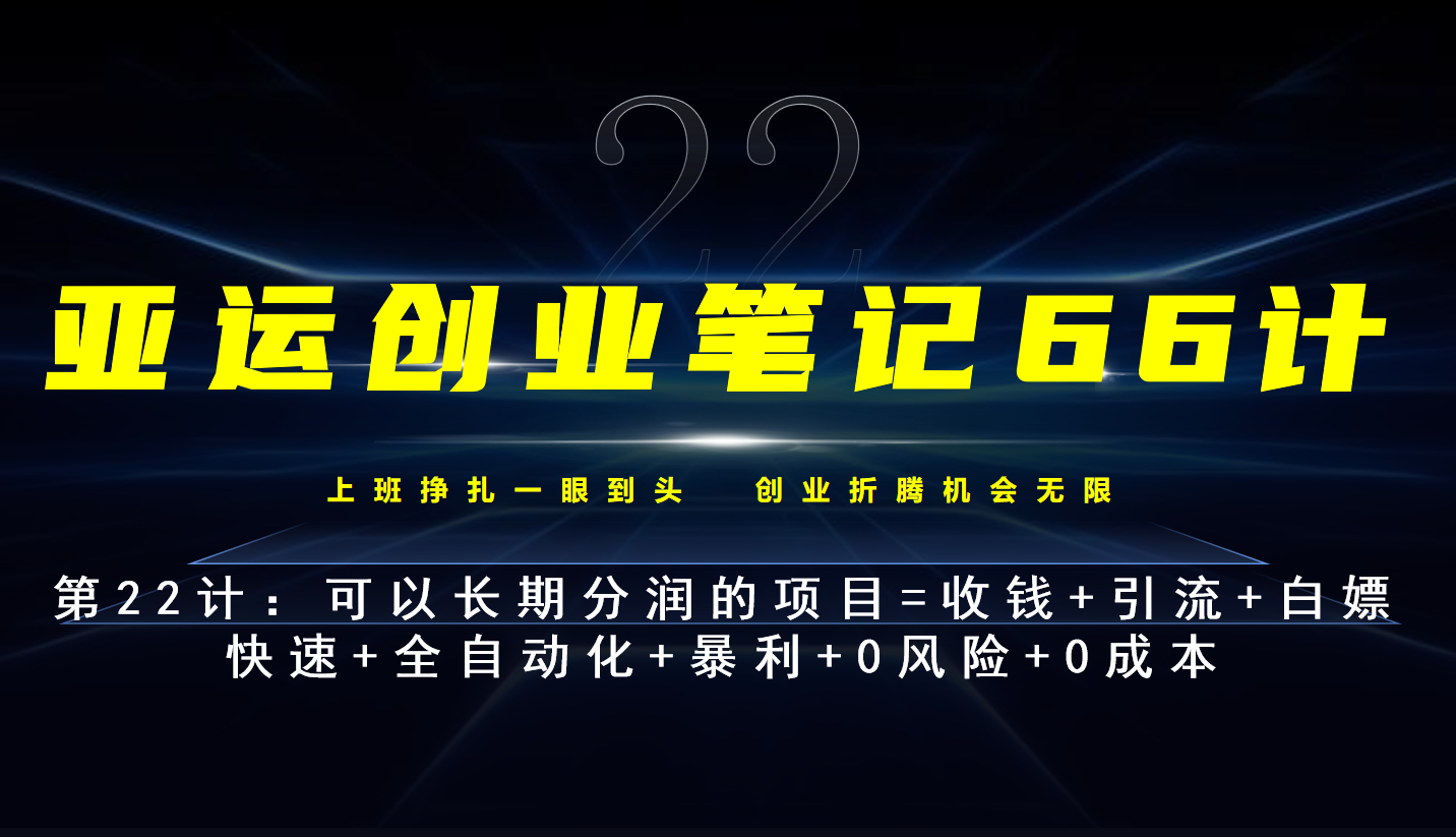 亚运创业笔记66计第22计:霸王餐外卖长期分润项目 2023-09-20 赚钱项目 9.33k 亚运创业笔记66计第22计:霸王餐外卖长期分润项目 1-项目介绍 2-实操路径 3-变现思路 4-总结 都已经打包好。 0